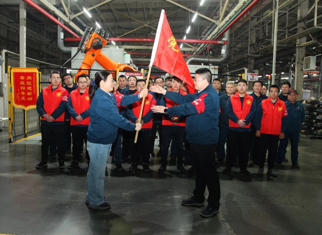 ??黨員先鋒帶頭攻堅,技術骨干24小時輪班破解產能堵點,成功完成兩款新型電驅橋工藝開發,多項指標實現突破。公司通過崗位練兵、技術比武等活動激發全員動力,已為36個班組授旗鼓勁,將“保生產、保發交”的壓力轉化為“爭先鋒、當排頭”的動力。